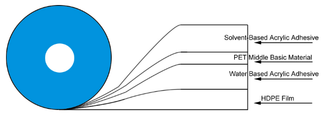 Филмот се користи за заштита на внатрешното лепило, така што лепилото може да остане со добри перформанси повеќе од една година. Тоа е најширокиот дел од лентата, лесно можете да ја откинете со прст. Може да се испечати упатство, лого, бела или црвена линија.